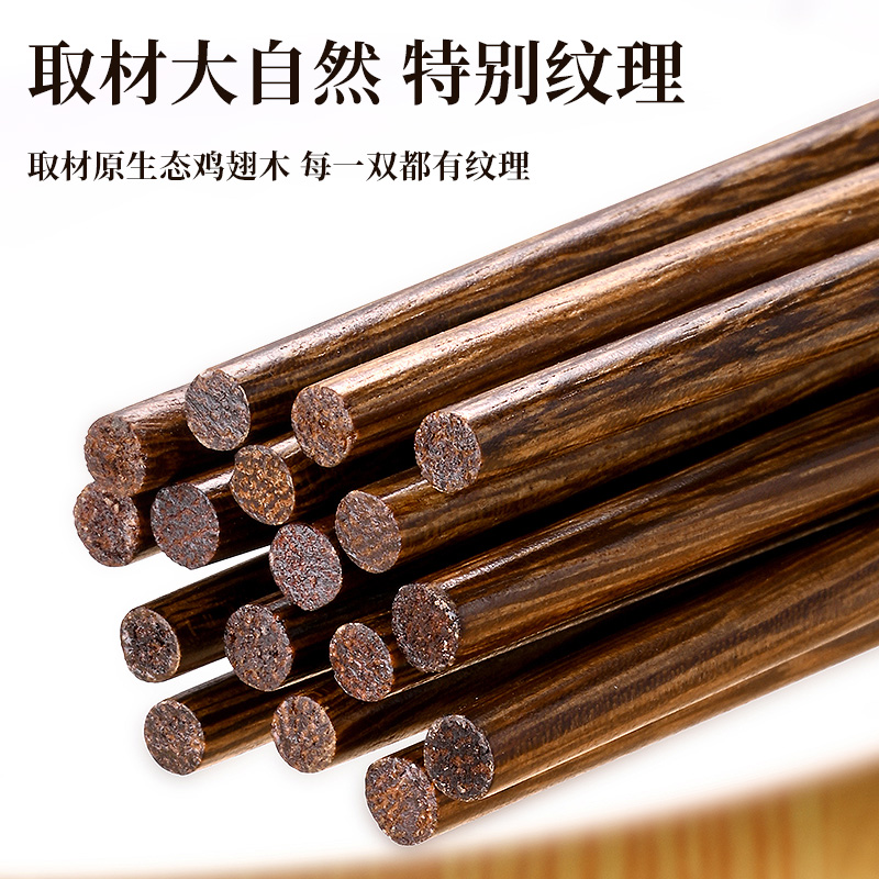 利瓷鸡翅木筷子家用防滑防霉木质快子10双20双家庭套装木箸
