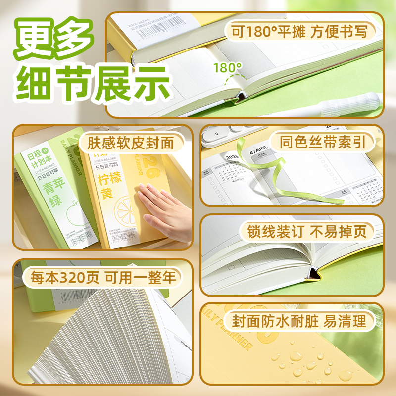 2026年日程本年历本一日一页计划本效率手册高颜值ins风笔记本本子2025日程表日历记事本每日月日记手帐本