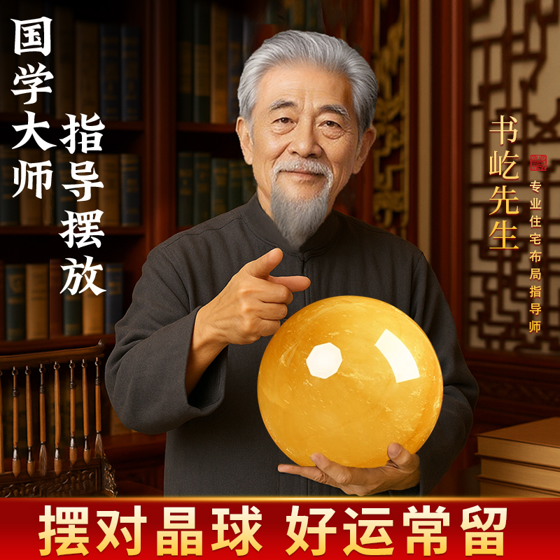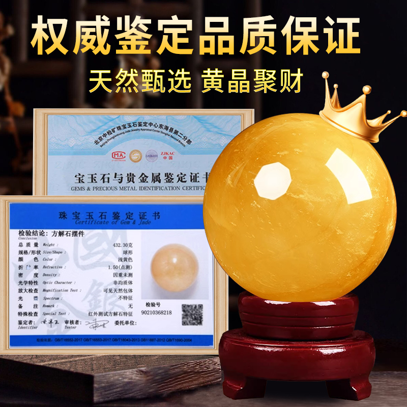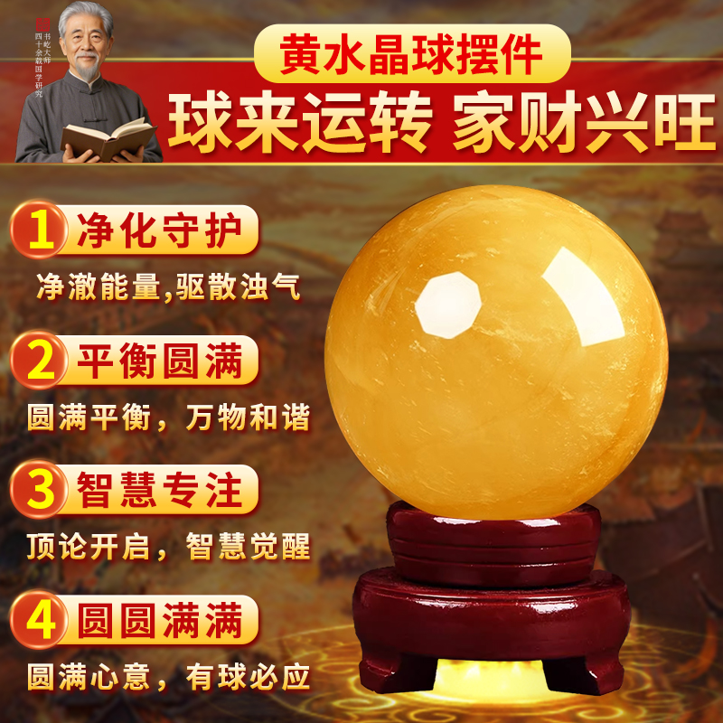 天然黄水晶水晶球真原石客厅装饰高档招财转运球摆件黄色白水晶