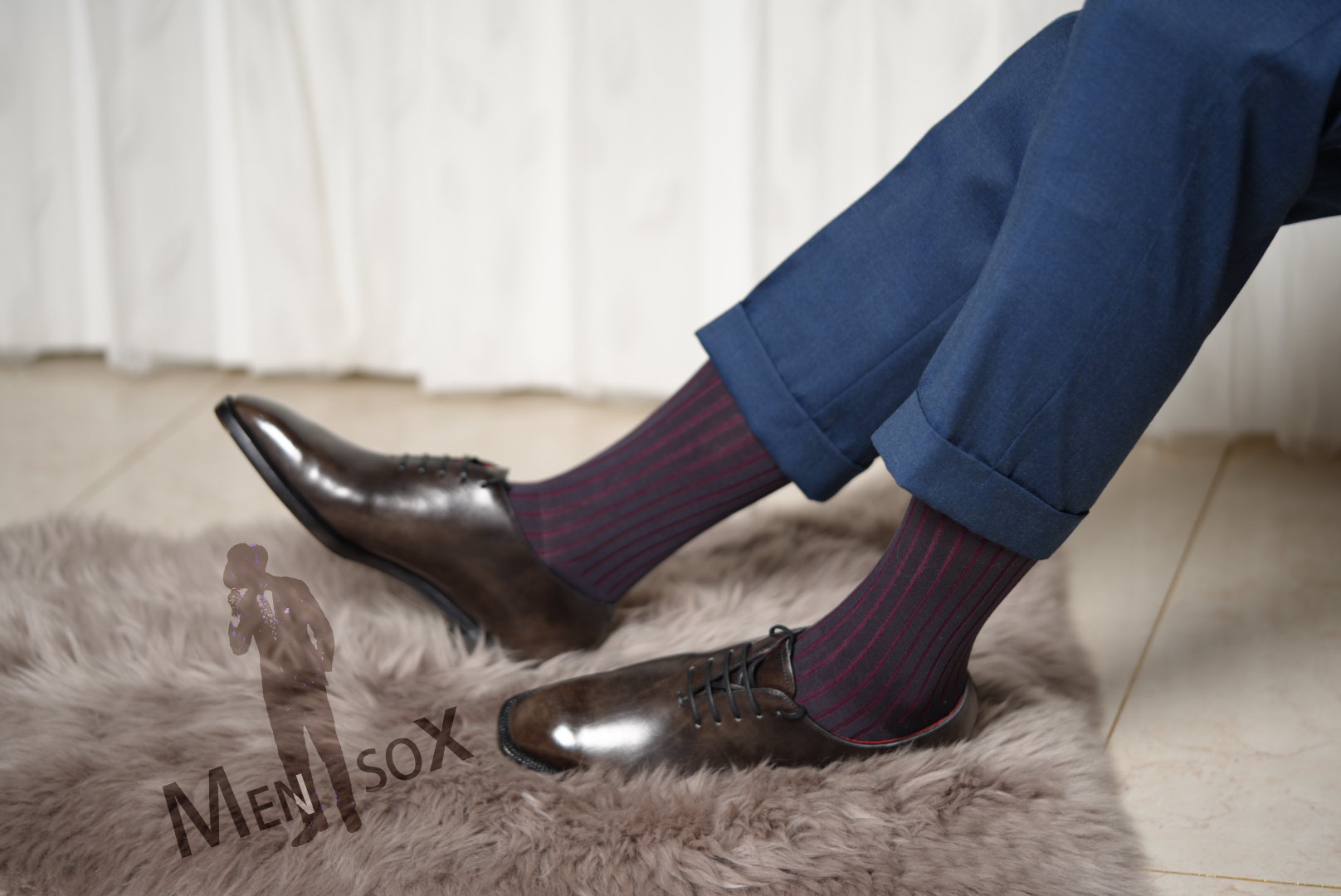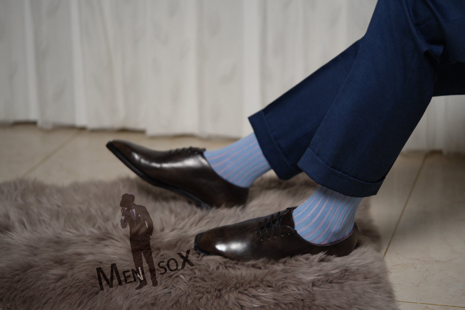 蓝色系土耳其viccel正装长筒袜celchuk暗影及膝男袜条纹弹力棉袜