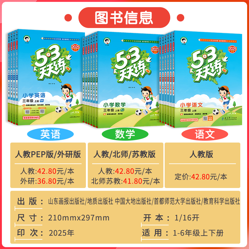 2025秋53天天练人教版一年级二年级三四年级五六年级上册下册全套同步练习册训练题语文数学英语苏教版北师大5.3五三5+3辅导教材