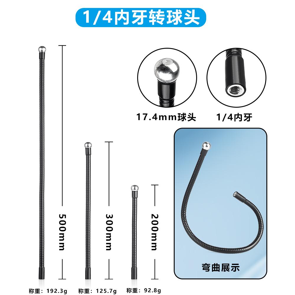 手机直播支架俯拍三脚架金属软管1/4双头螺丝弯管灯架通用配件设备器材支撑延长接驳增高杆球头夹圆孔3/8接口