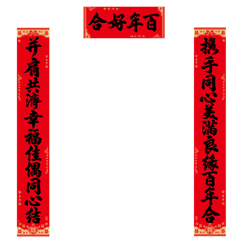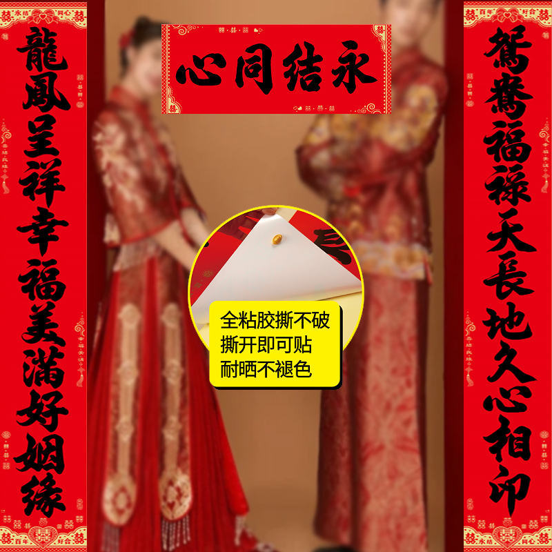 【十一言】全背胶11言结婚对联男方婚房布置农村大门书法出嫁自建