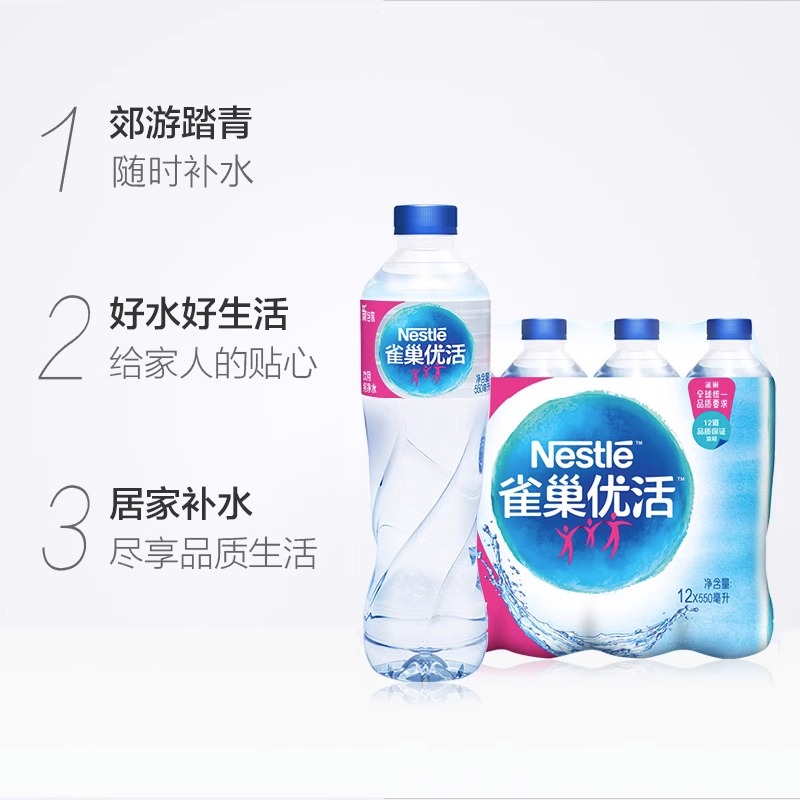 雀巢优活纯净水550ml*24瓶整箱包邮塑膜小瓶装水非矿泉水饮用水