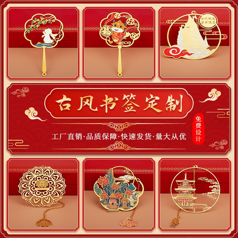 速发金属书签小批量镂空烤漆黄铜天鹅颈书签大学纪念文创礼品