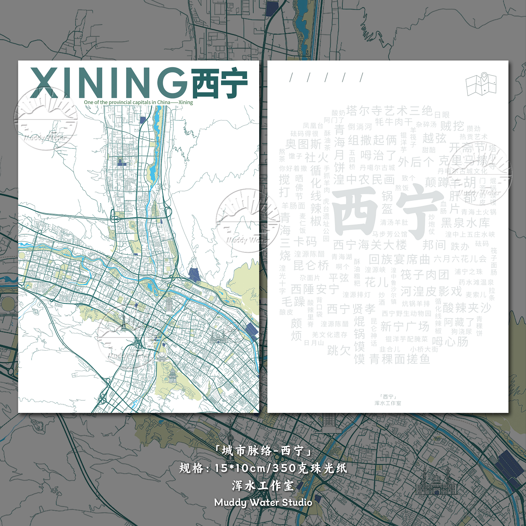 「城市脉络-西宁」原创地图创意明信片插画高级文艺旅游贺卡礼物