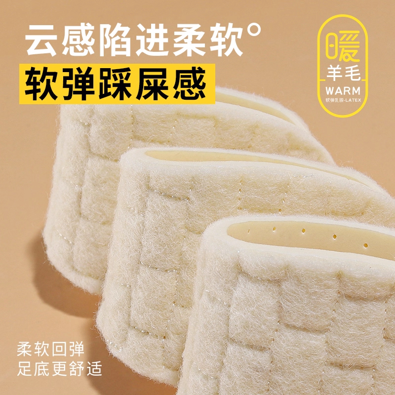 100%羊毛乳胶保暖棉鞋垫男女加厚吸汗防臭超软底舒适防寒毛绒冬季