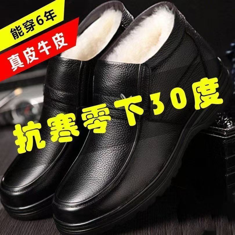特价清仓捡漏真软皮冬季加绒加厚保暖棉皮鞋百搭休闲防滑男鞋高帮