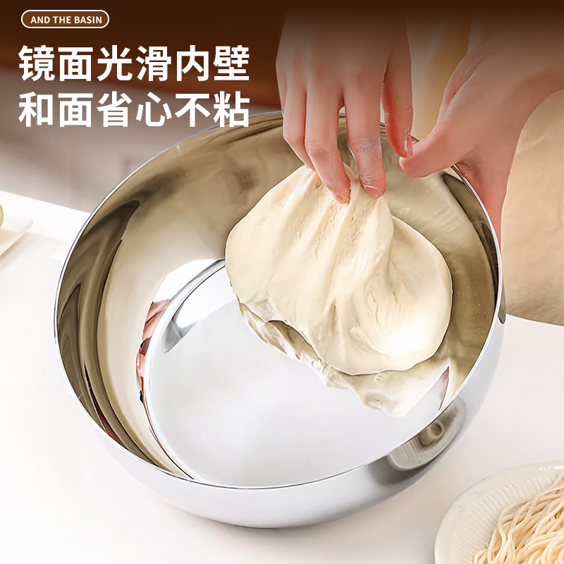国风巨厚和面盆不锈钢316食品级304家用揉面洗菜发面盆带盖面盆