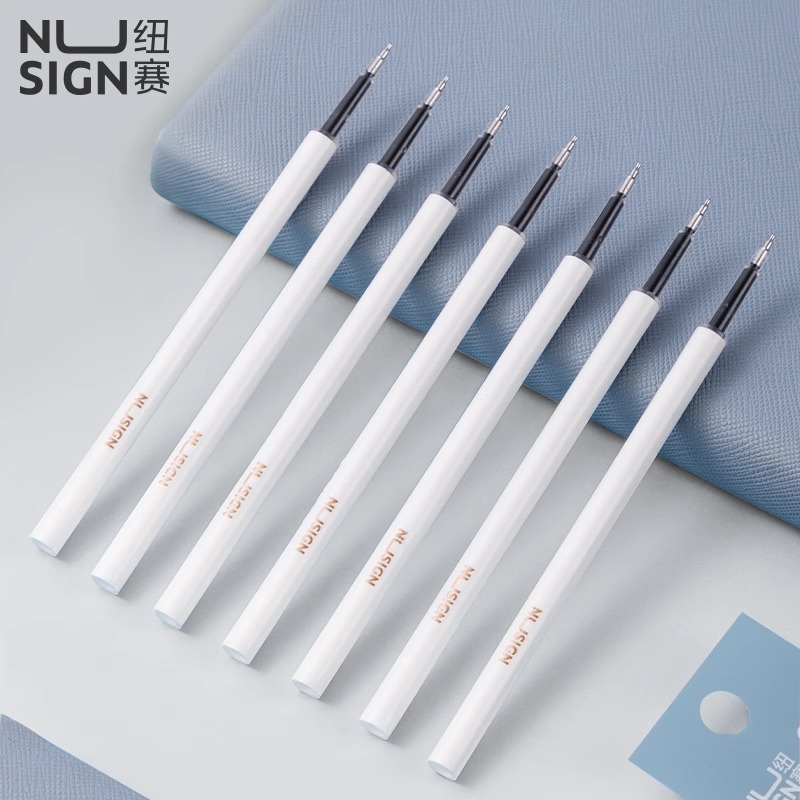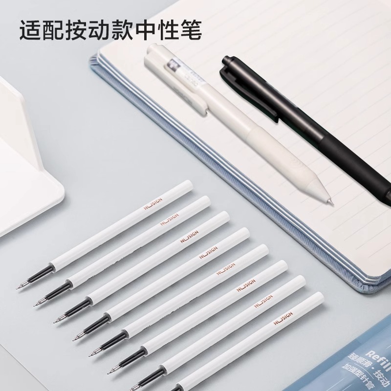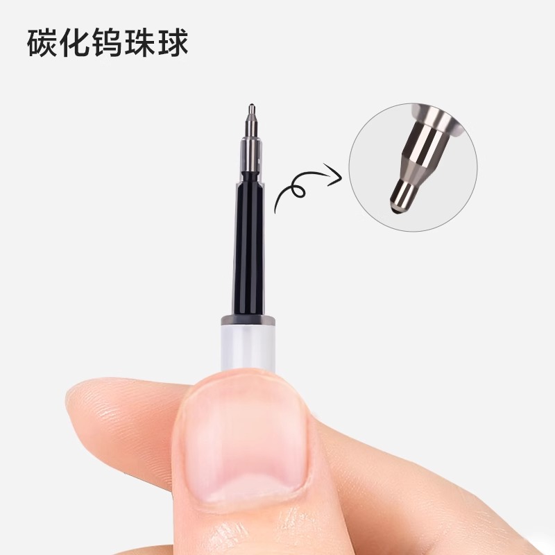 得力ST头按动笔芯速干中性笔芯黑色0.5笔芯加强型葫芦头刷题笔芯桶装可替芯批发签字学生考试专用针管头摁动