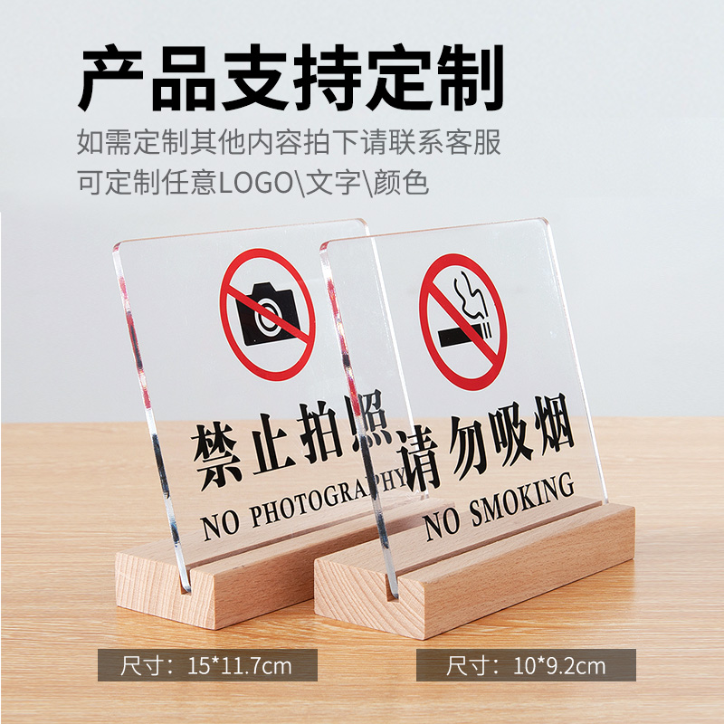 亚克力室内禁止吸烟立牌拍照请勿触摸警示牌定制禁烟酒店宾馆卧床吸烟台提示牌桌牌定做抽烟请移步室外标识牌