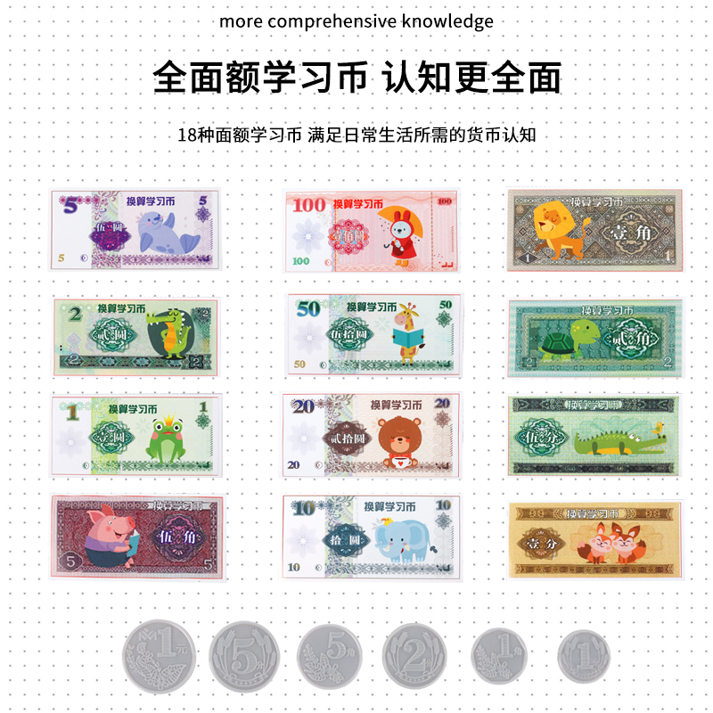 认识人民币学习教具一年级下册数学元角分训练学习币仿真钱币学具