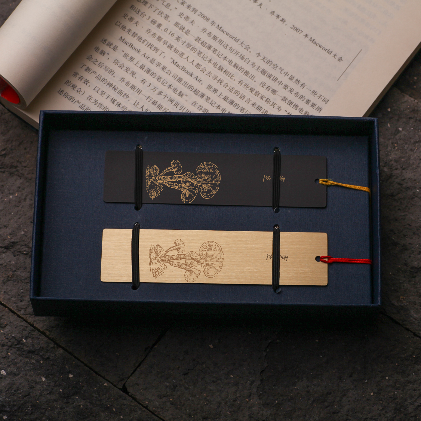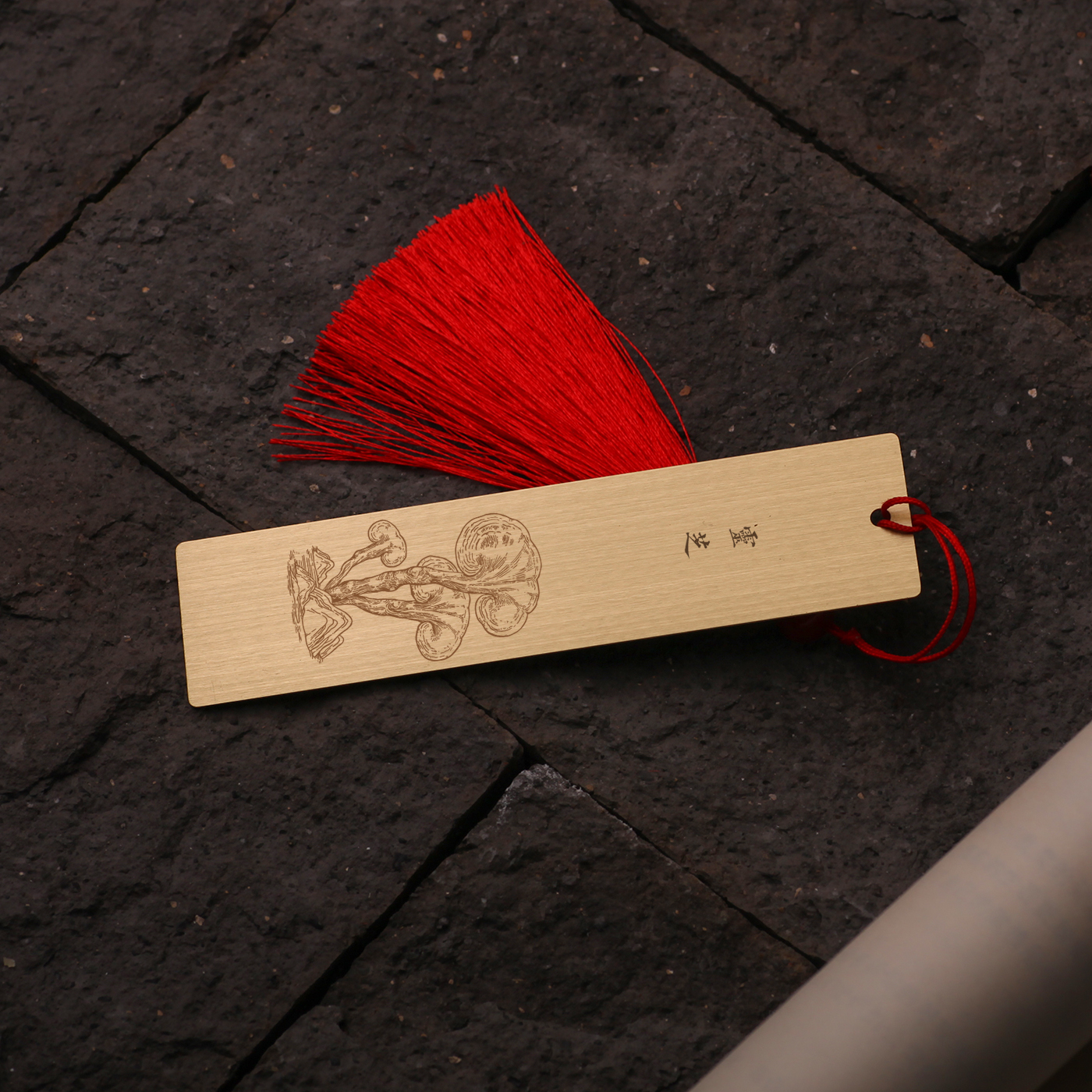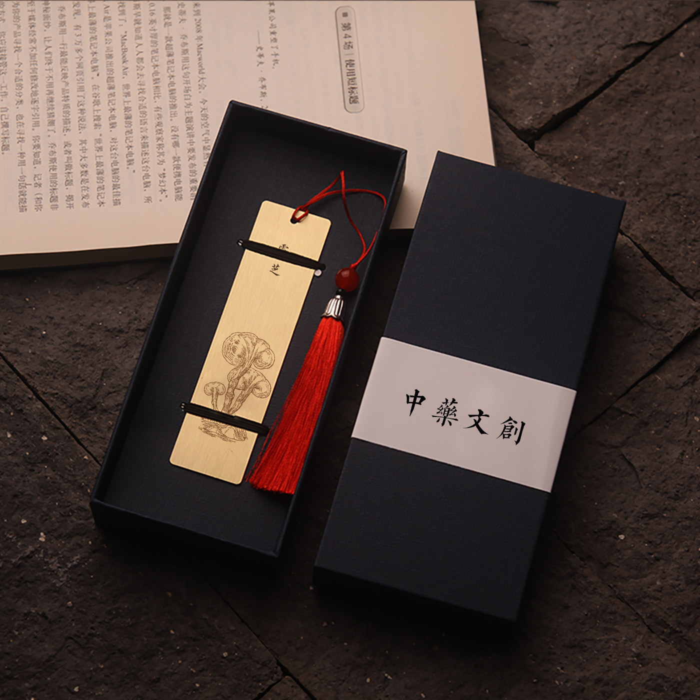 灵芝黄铜书签中药书签药材画香料展示中医特色礼物文化刻名字送人
