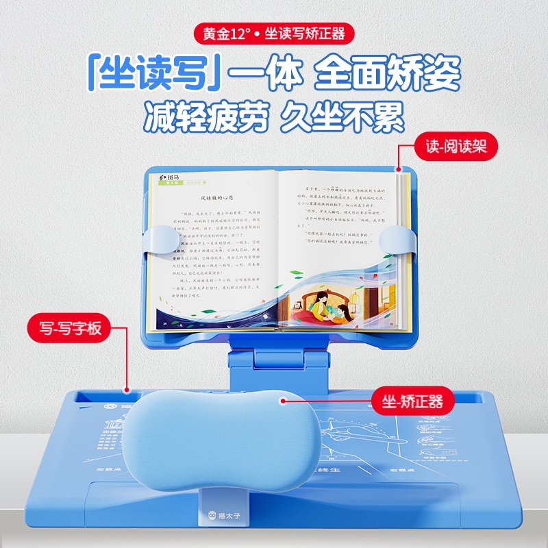 猫太子12°坐姿矫正器儿童写字姿势纠正神器桌面款小学生黄金12度防近视支架写作业学习书写防低头防驼背提醒