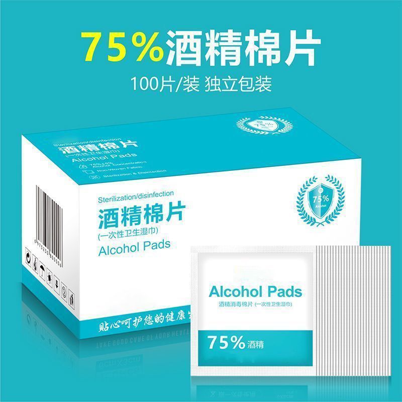 75度酒精棉片100片一次性消毒棉棒大号湿巾手机眼镜美甲独立包装