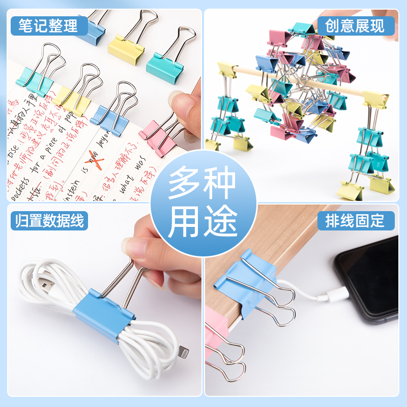 晨光长尾夹彩色黑色文件夹子多功能金属燕尾夹发票据省力办公用品