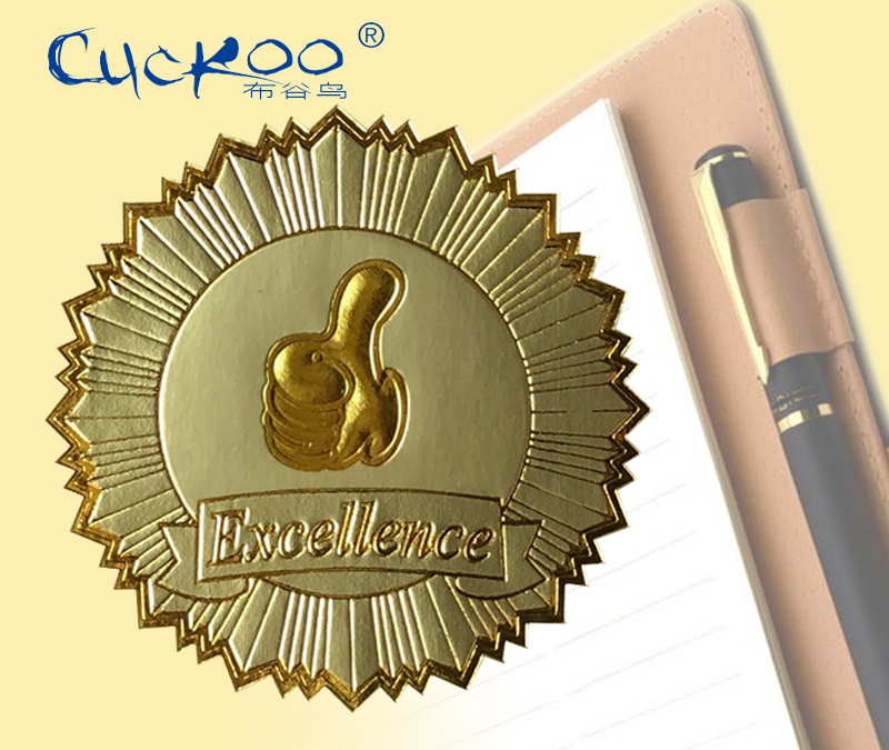 布谷鸟圆形奖章印章创意金色欧式徽章不干胶激励奖励贴纸钢印荣誉证书装饰蝴蝶结燕尾丝绸缎带证书扎带
