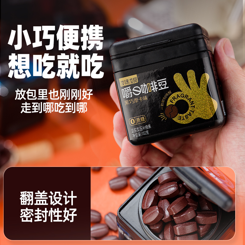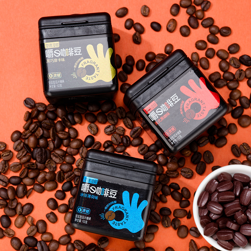 汝唻汝甜无蔗糖薄荷冰咖啡糖可嚼咖啡豆开车犯困学生提神醒脑糖果