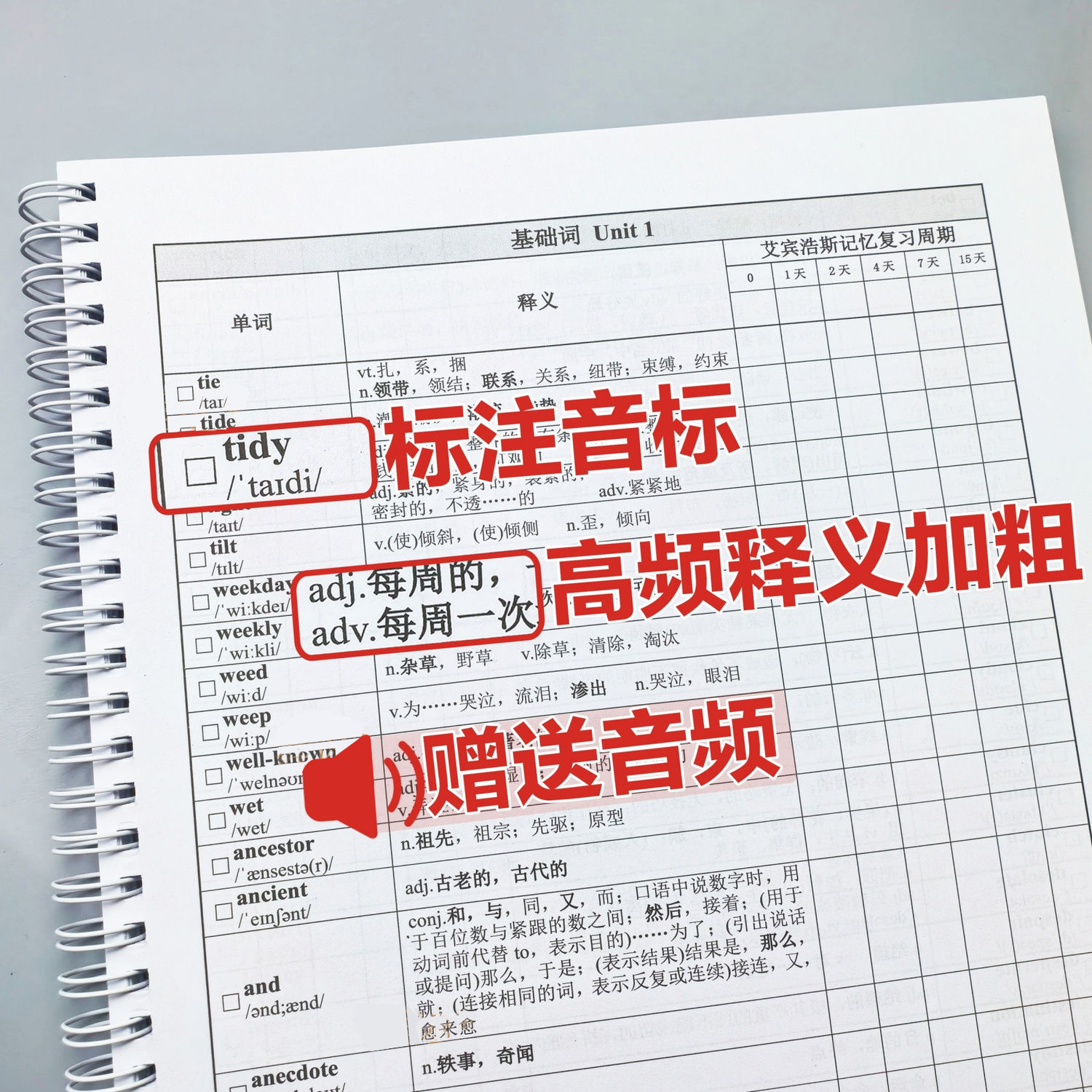 英语单词本默写本记忆艾宾浩斯遗忘曲线记背神器积累考研大学生纸便携式学习笔记本子初高中背诵听写速记活页