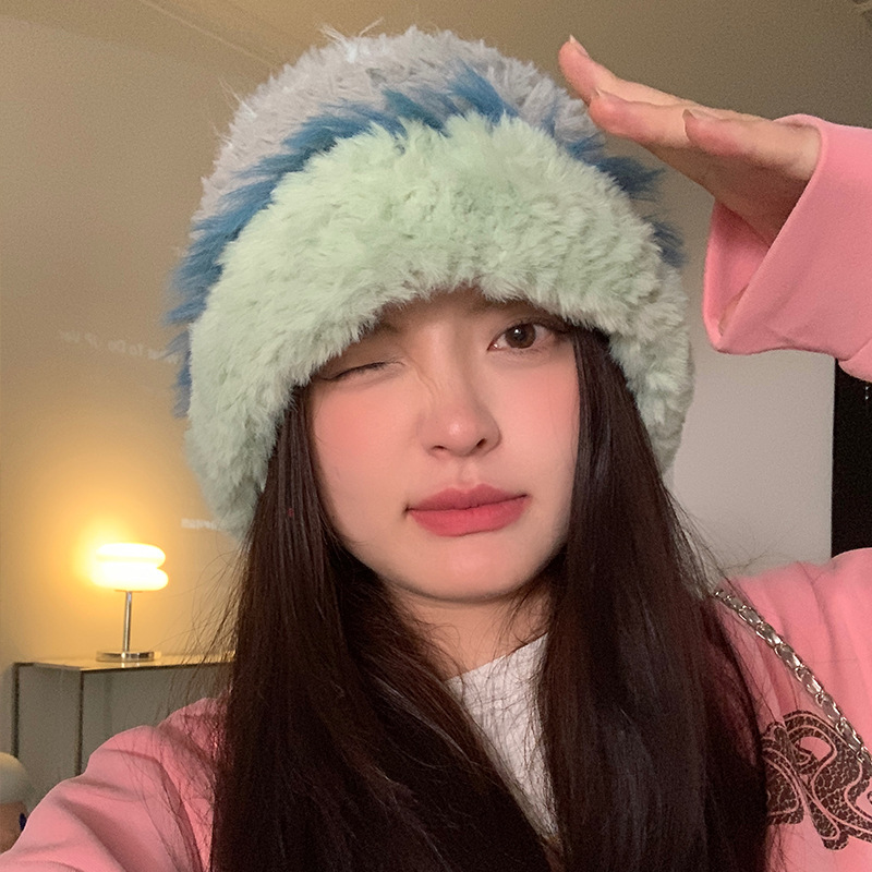 加厚毛绒绒针织帽子女秋冬款防寒毛线帽保暖护耳显脸小韩版大头围