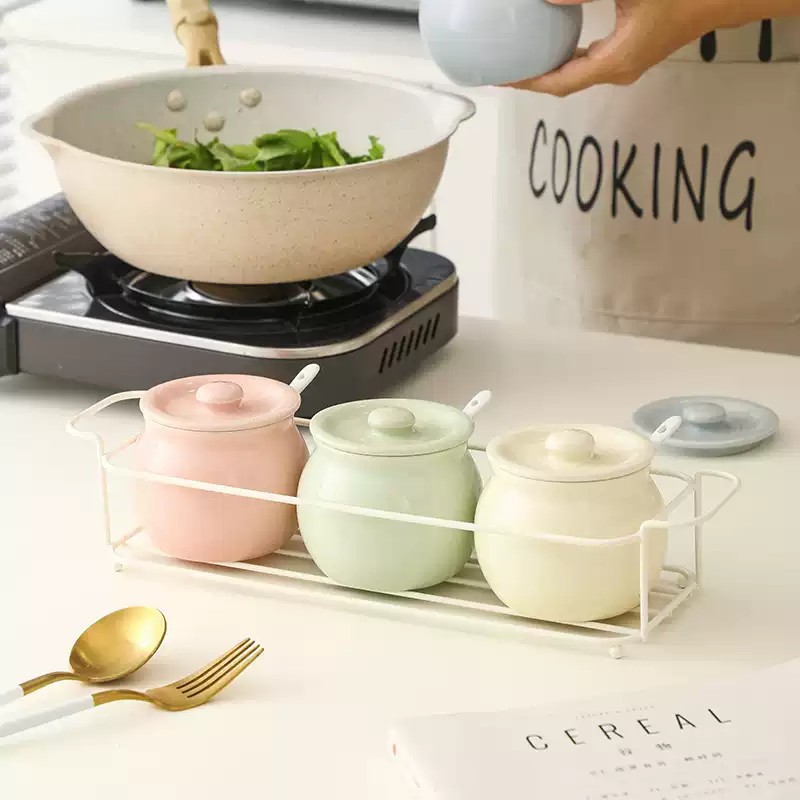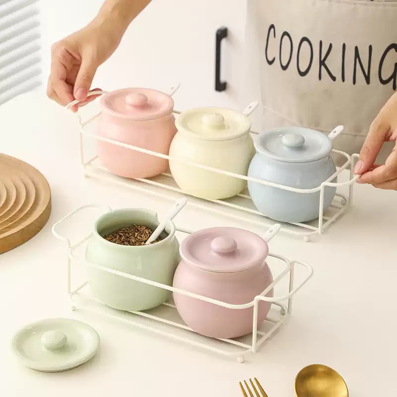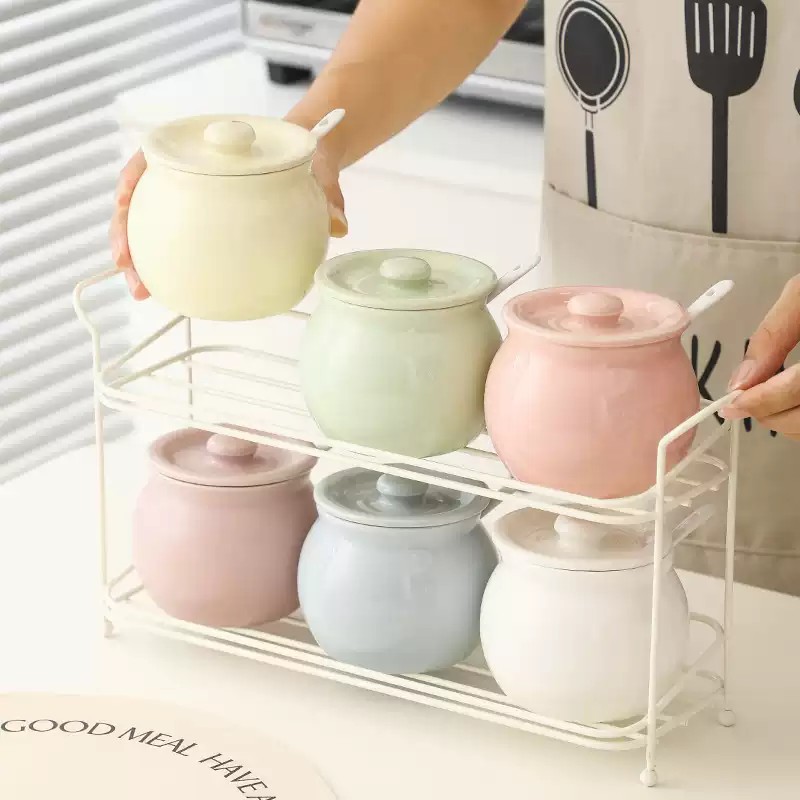 陶瓷调味罐家用带套装高颜值厨房调料盒置物架味精盐罐辣椒罐商用