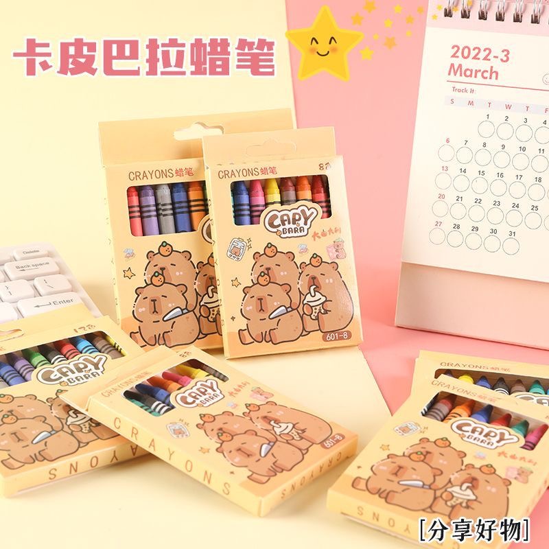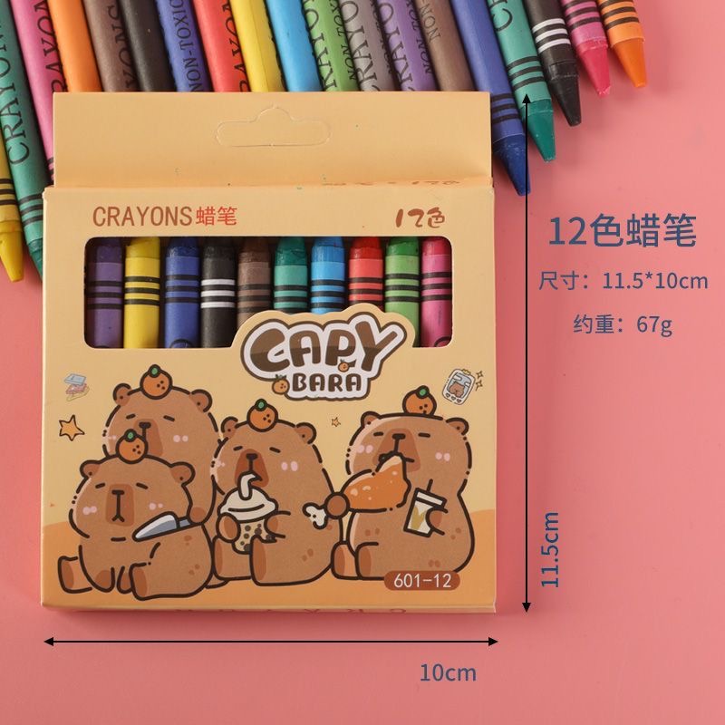 卡通蜡笔卡皮巴拉多色小蜡笔文创小礼品绘画文具可水洗油画棒礼品