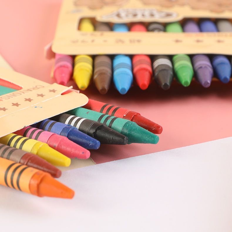mobee饼干蜡笔儿童画画笔12/24/36色绘画套装幼儿园油画棒宝宝婴儿腊笔无毒不脏手可水洗创意文具美术用品