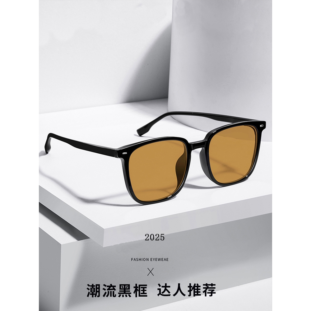 小米向前黑框茶色墨镜男士新款潮方形开车专用高级感大脸太阳眼镜