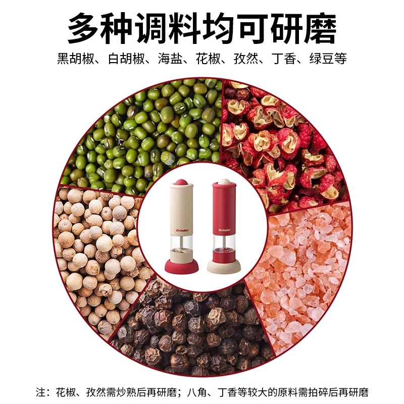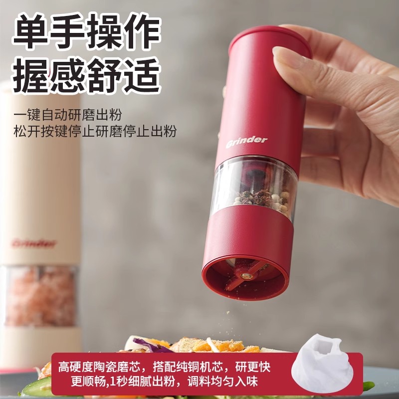 电动胡椒研磨器厨房海盐调料瓶罐盒家用孜然粒白黑胡椒粒研磨器