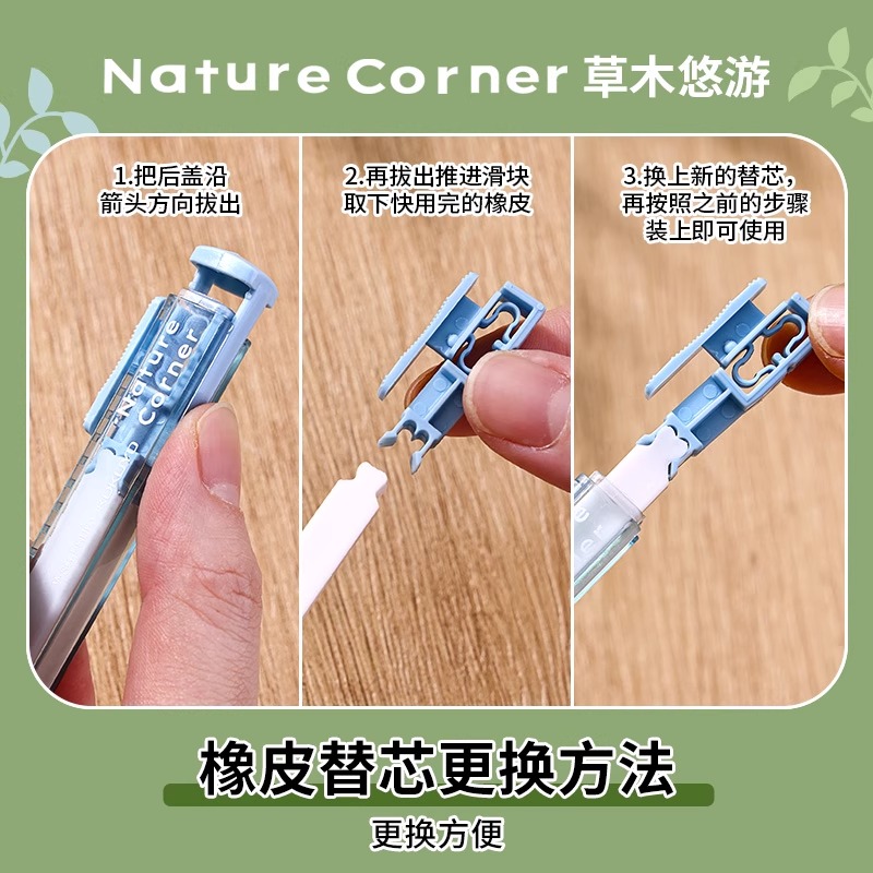 日本KOKUYO国誉Nature Corner草木悠游系列细细擦橡皮笔型橡皮擦可换替芯学生用品素描美术绘图学习考试专用