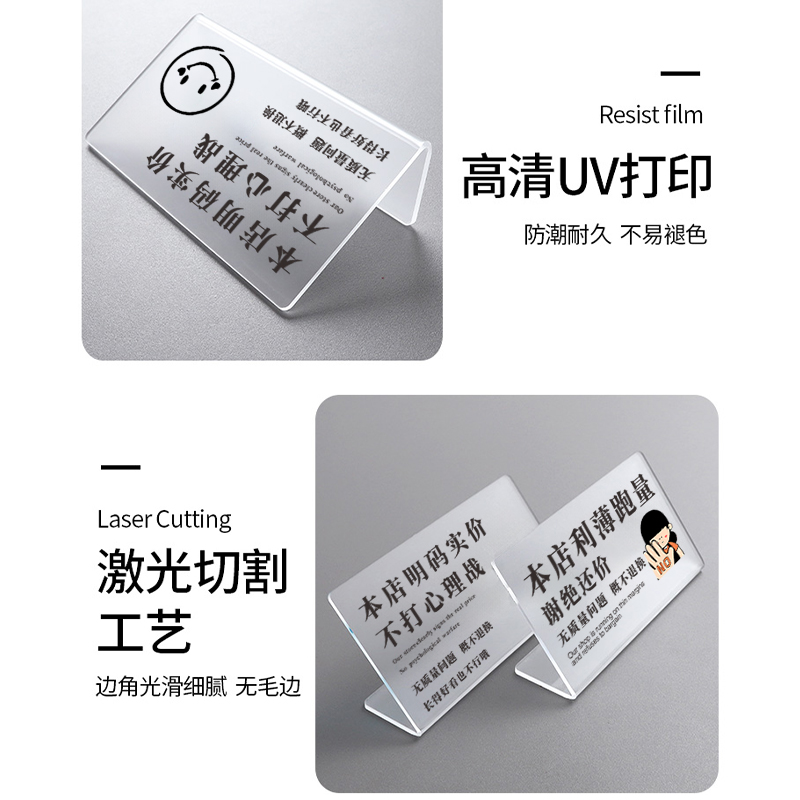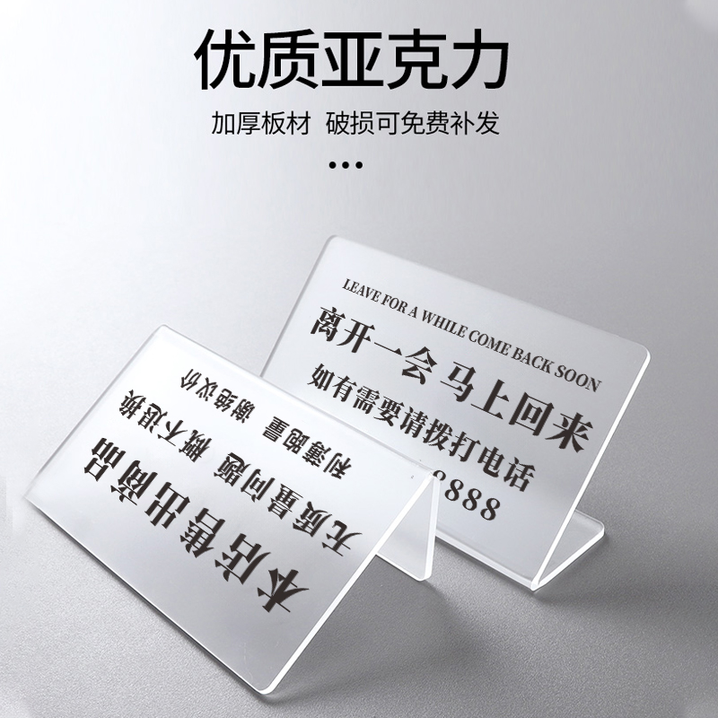 烟酒售出离柜概不退换提示牌正品保证假一赔十亚克力标识牌离开一会儿马上回来立牌室内禁止吸烟桌面摆台定制