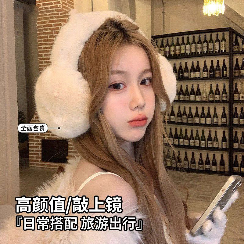 氛围毛绒耳罩女冬季加厚保暖高颜值可折叠防风抗寒显脸小防冻耳包