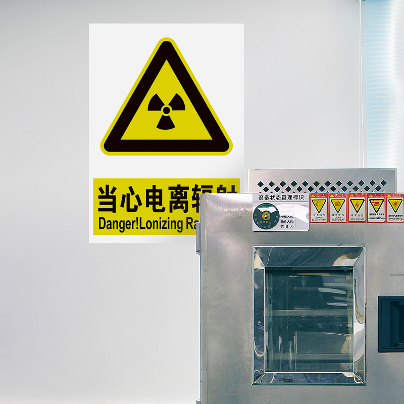 当心电离辐射微波放射性危害未经过培训人员禁止操作该设备注意开管顺序工作区域禁止堆放安全警示标识标志牌