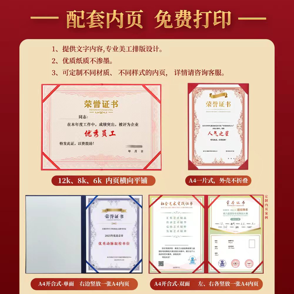 A4荣誉证书外壳定制珠光磨砂聘书结业证书定做可打印内页获奖封皮