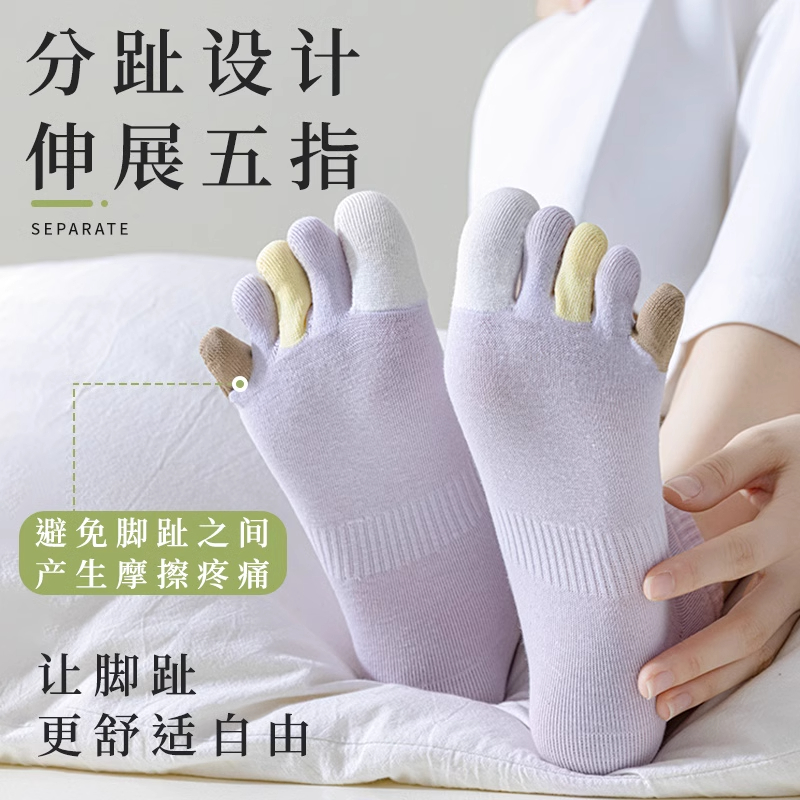 五指袜女士纯棉夏季短袜抗菌防臭运动吸汗脚趾袜女分趾无骨袜春秋