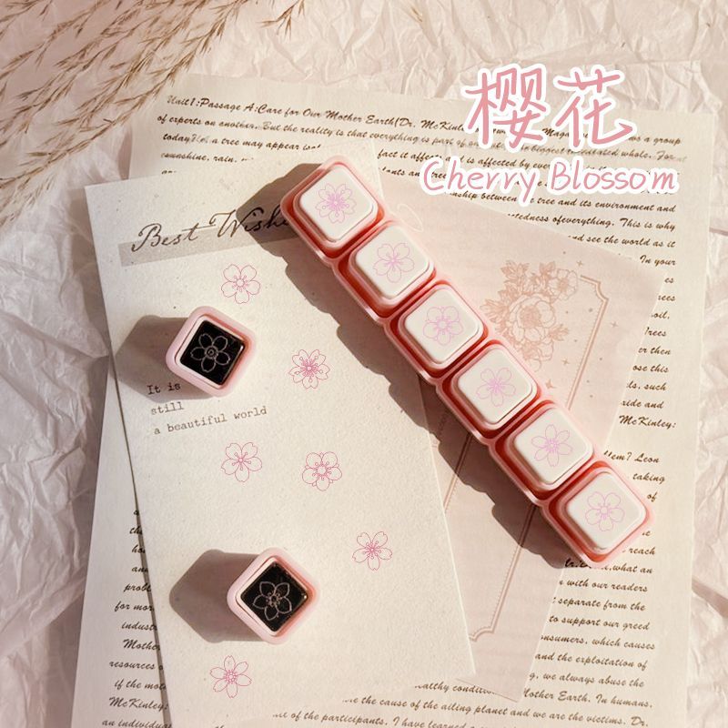 四季六联花朵树叶手账印章樱花四叶草枫叶雪花春夏秋冬一年四季章