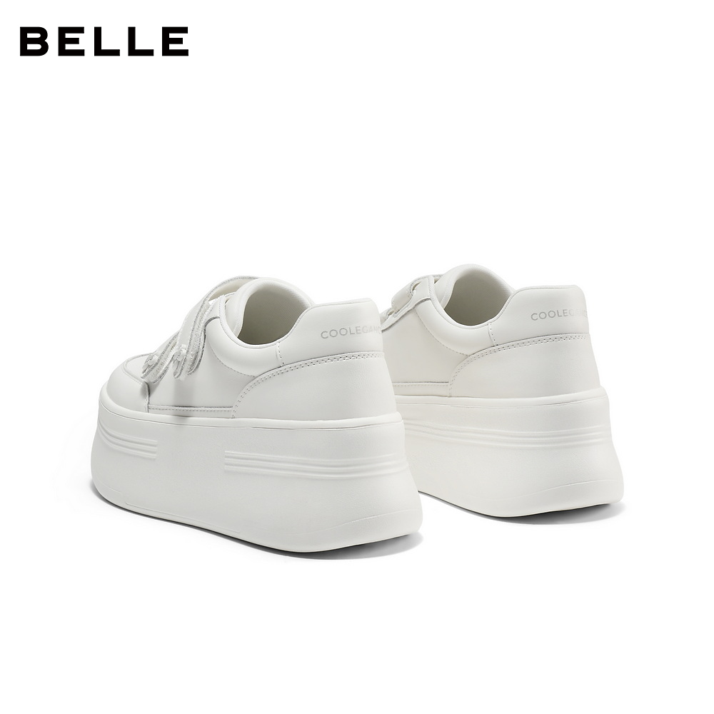 百丽厚底魔术贴小白鞋女25秋季新款增高休闲运动板鞋子B2754CM5