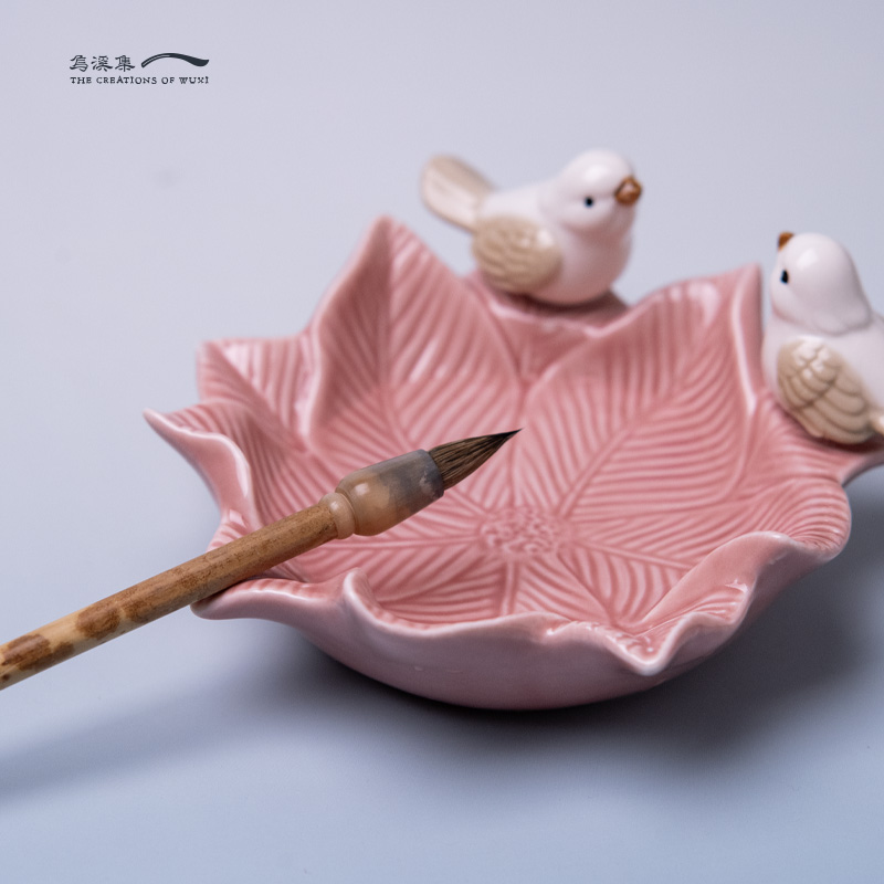 花间栖语墨碟笔洗文房四宝书法用品国画工具毛笔笔搁墨池墨盒白瓷