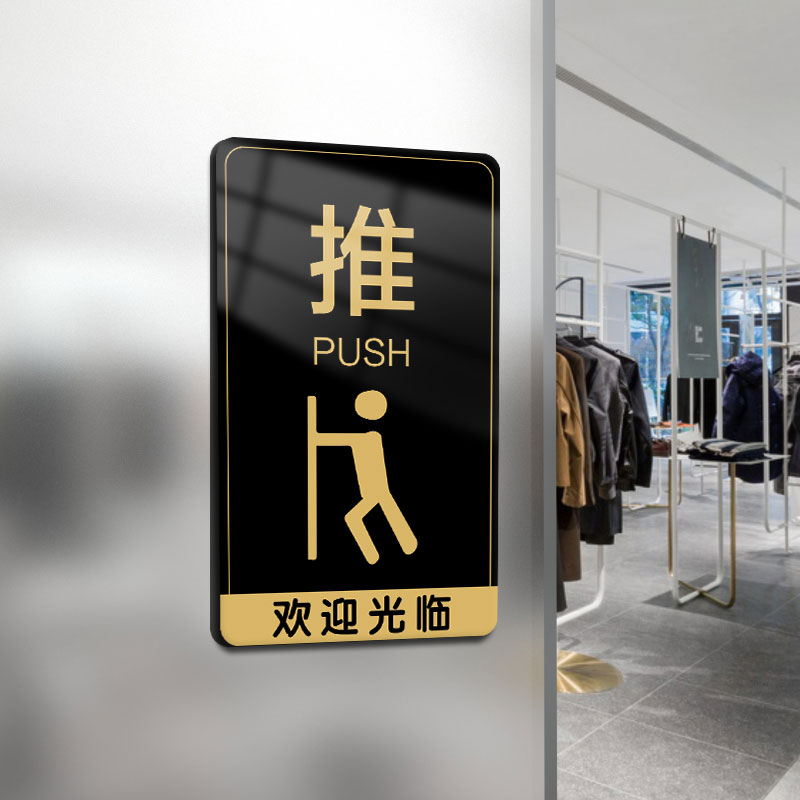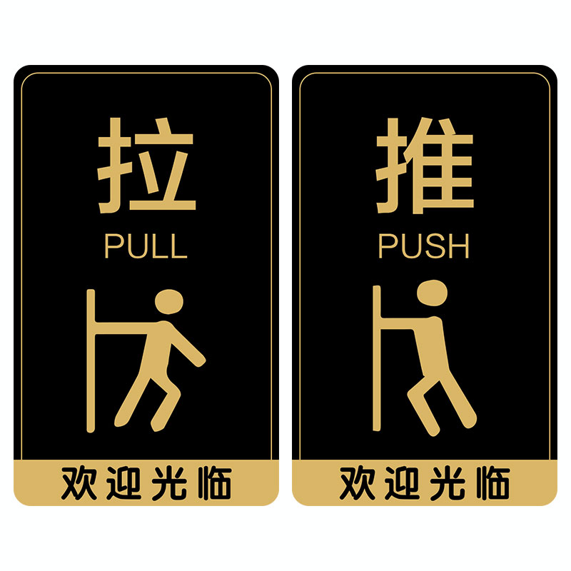 推拉门贴玻璃门贴请推此门提示牌推字拉字亚克力左右移门字贴定制超市店铺门口创意提醒牌移门开关门标识标牌