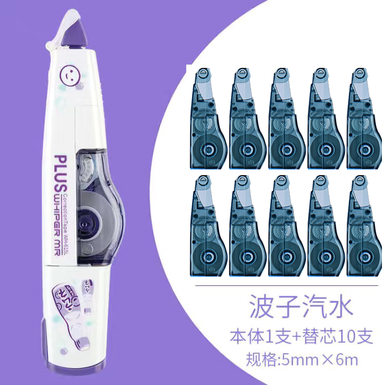 蓝黑色现货 日本plus普乐士修正带可爱少女修正带替换芯限定学生用涂改带替芯蓝黑凰羽毛限量款改正带实惠装