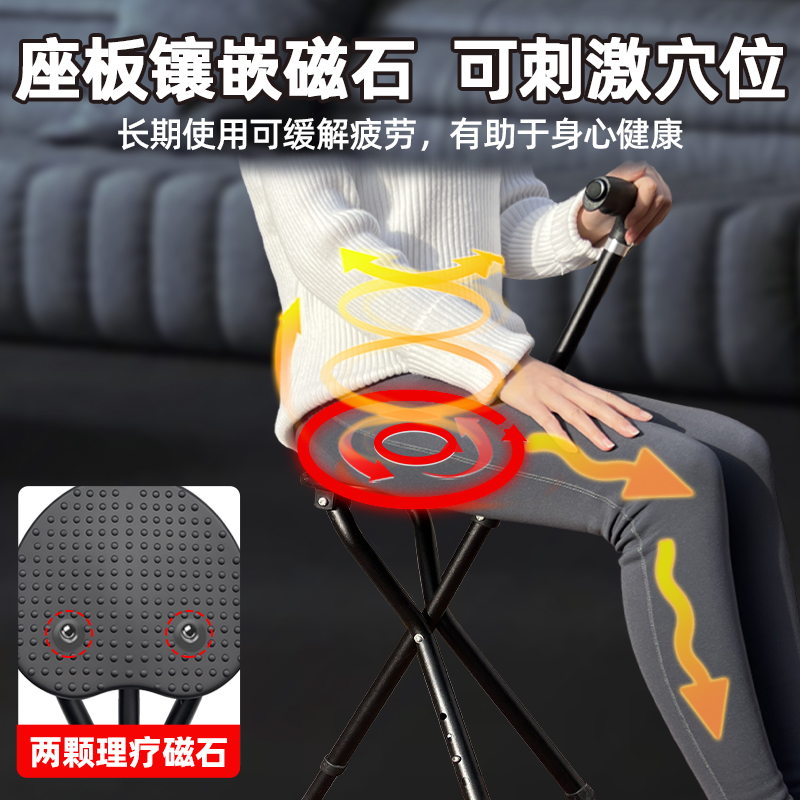老人拐杖凳子防滑助步器可坐手杖拐棍老年拐扙椅可折叠登山橡胶