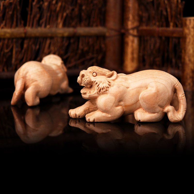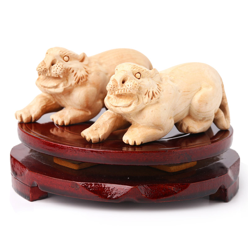 老虎摆件客厅办公室装饰品桌面年本命年礼物桃木雕实木原色吉祥物