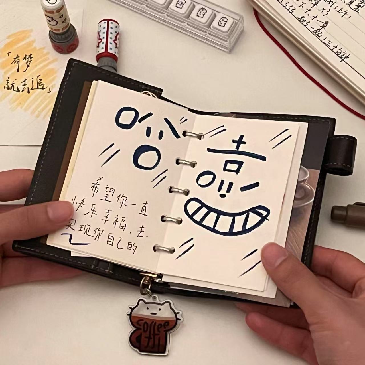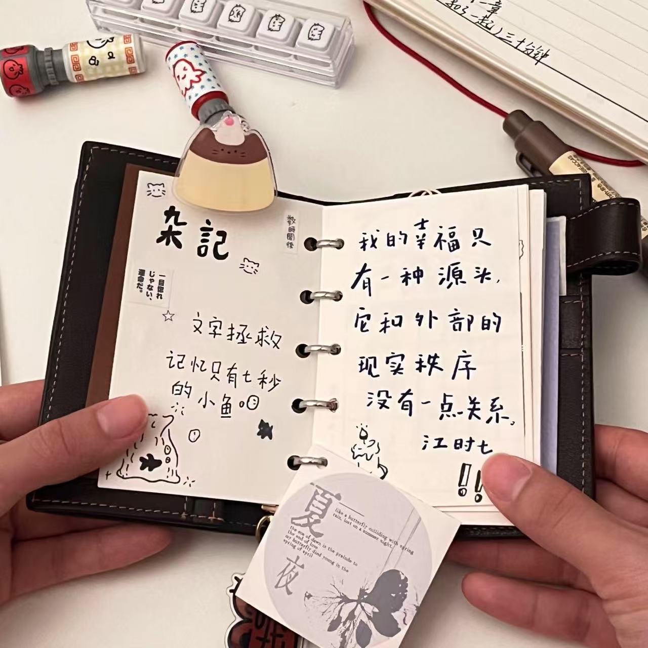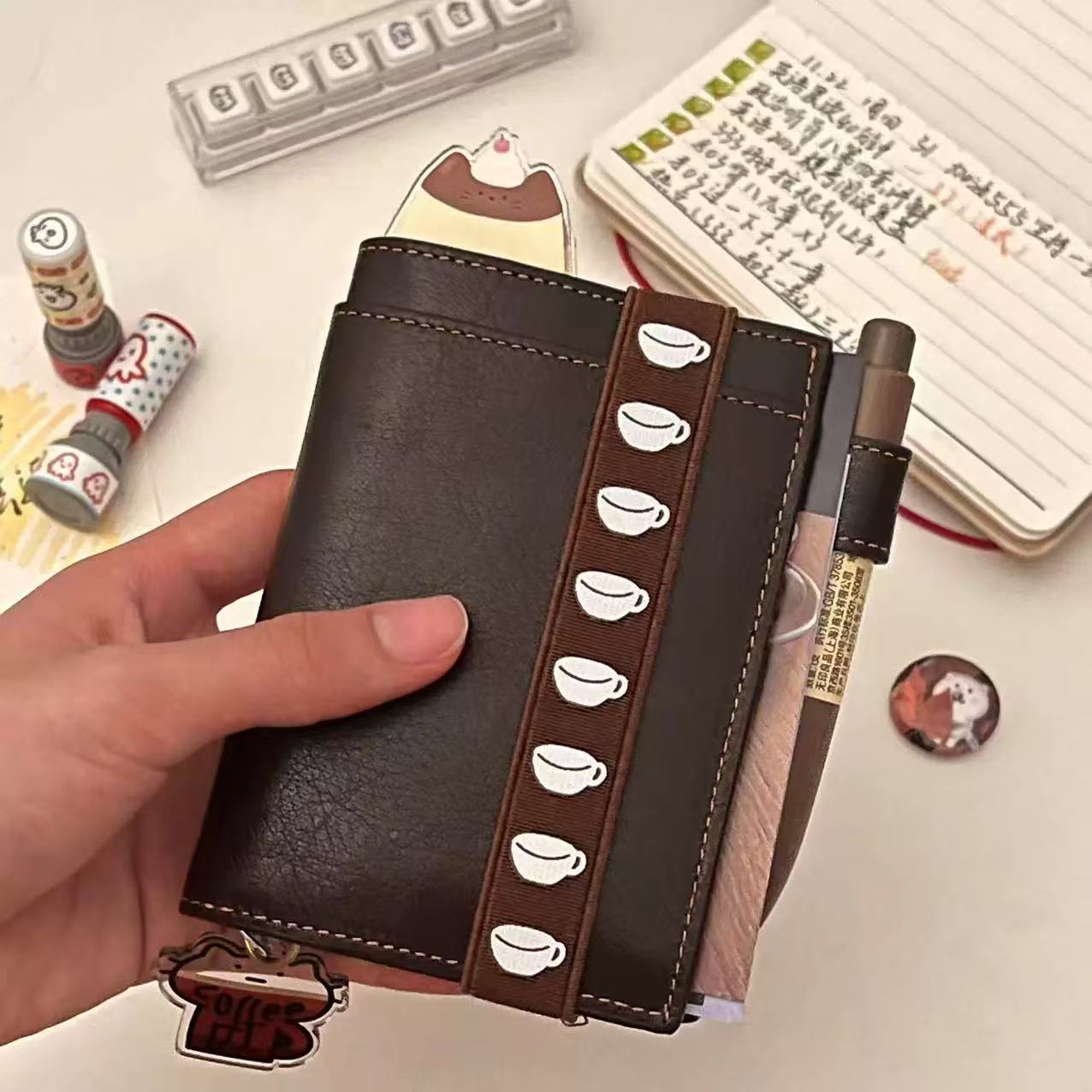 复古咖色皮质m5手账本学生小众ins风高颜值随身活页日记事笔记本