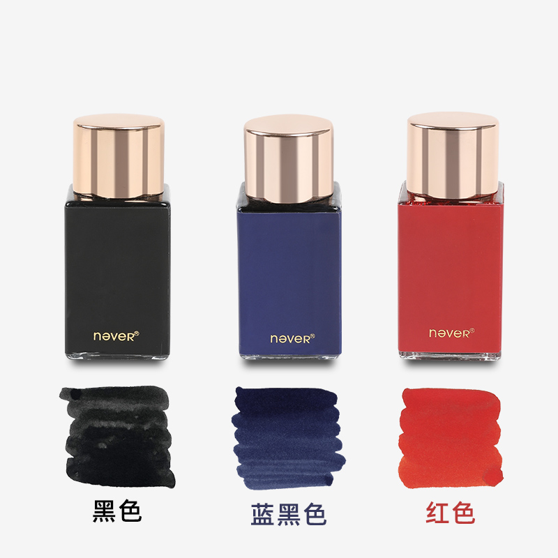 never钢笔墨水非碳素蓝黑色红色黑色彩墨学生用不堵笔18ml
