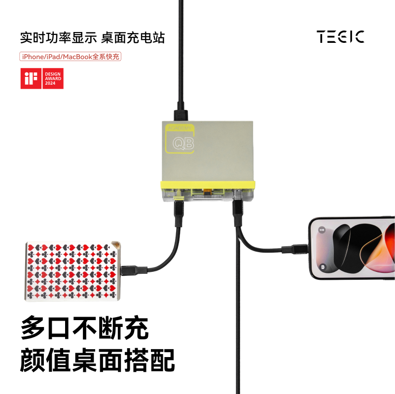 TEGIC 桌面充电站多口不断冲130W功率显示调节充电坞多功能快充充电器快充头电竞桌搭 快哔QUICKBE 特极客