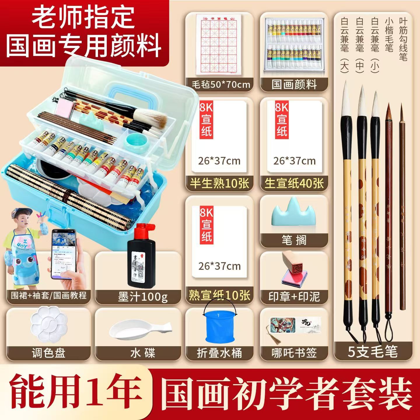 国画初学者套装画魂中国画颜料12色小学生三年级入门用品水墨画工笔画工具全套生宣纸熟宣纸卡纸美术专用毛笔