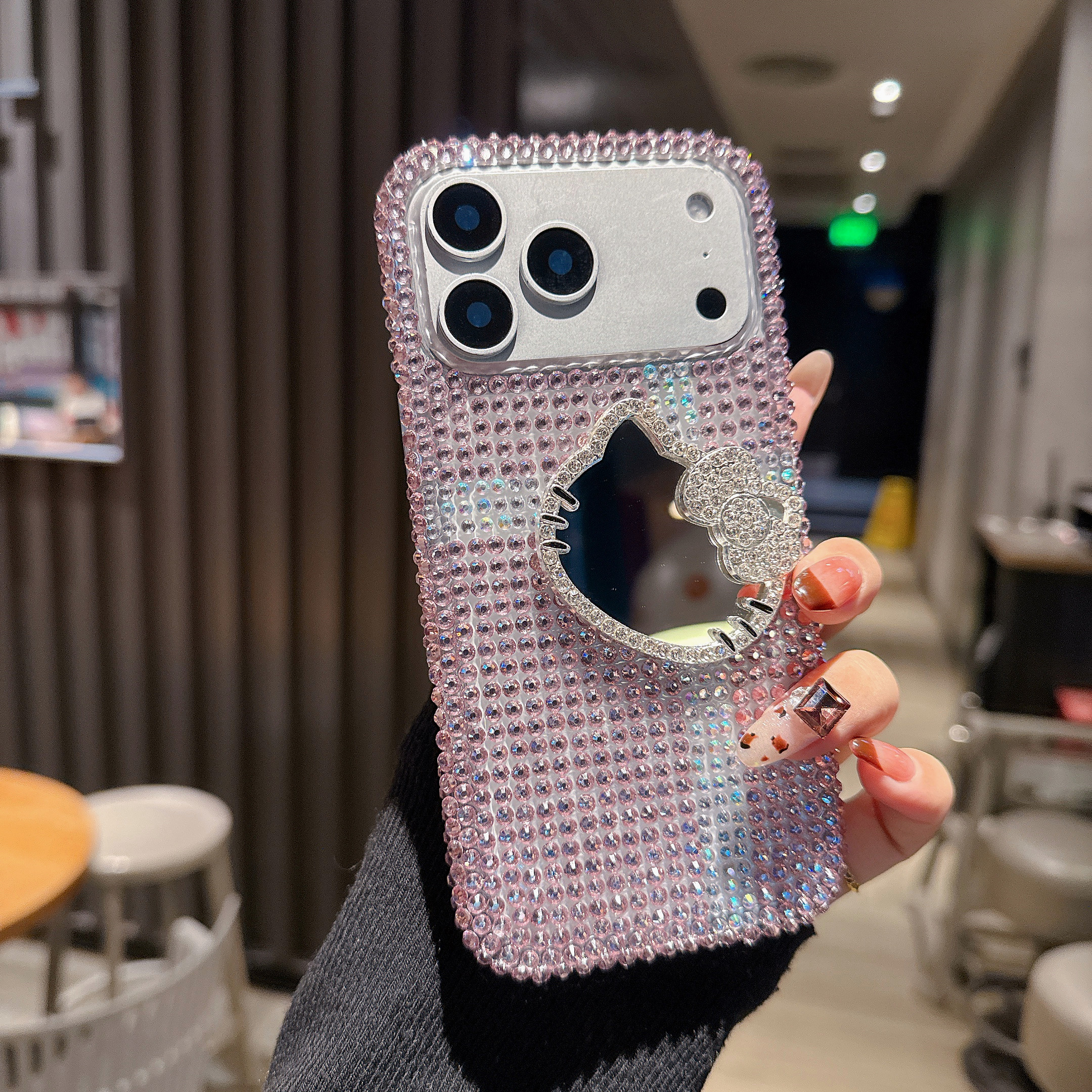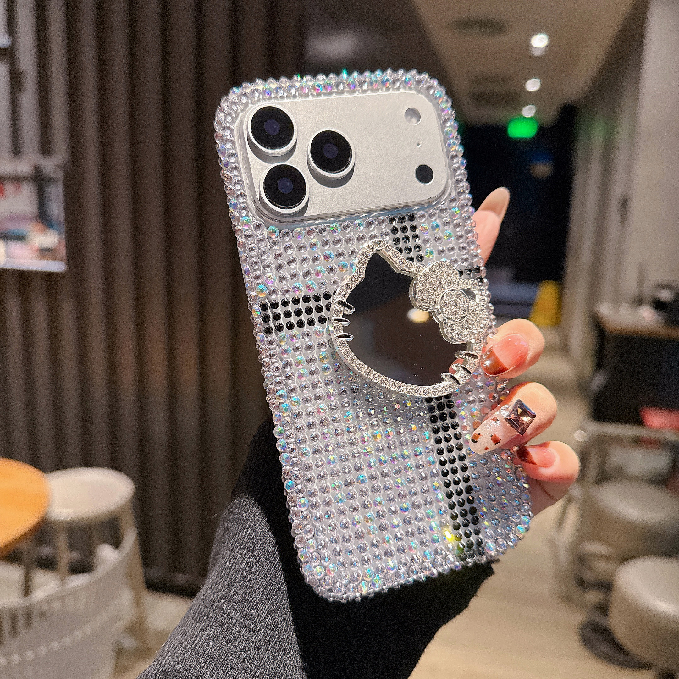 淳于亦ins风闪钻凯蒂猫蝴蝶结镜苹果17promax手机壳15pro全包边大视窗镶钻KT壳14/13创意可爱十字样式底6保护