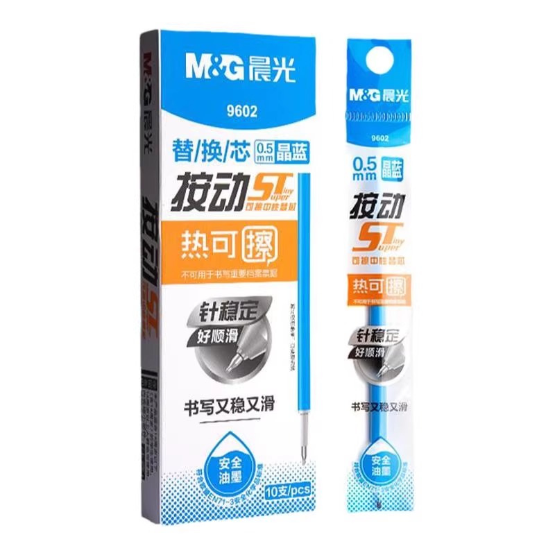 晨光正品热可擦中性笔按动替芯晶蓝黑色笔芯0.5mmST笔头大容量魔力易摩磨擦签字笔小学生专用学习用品文具