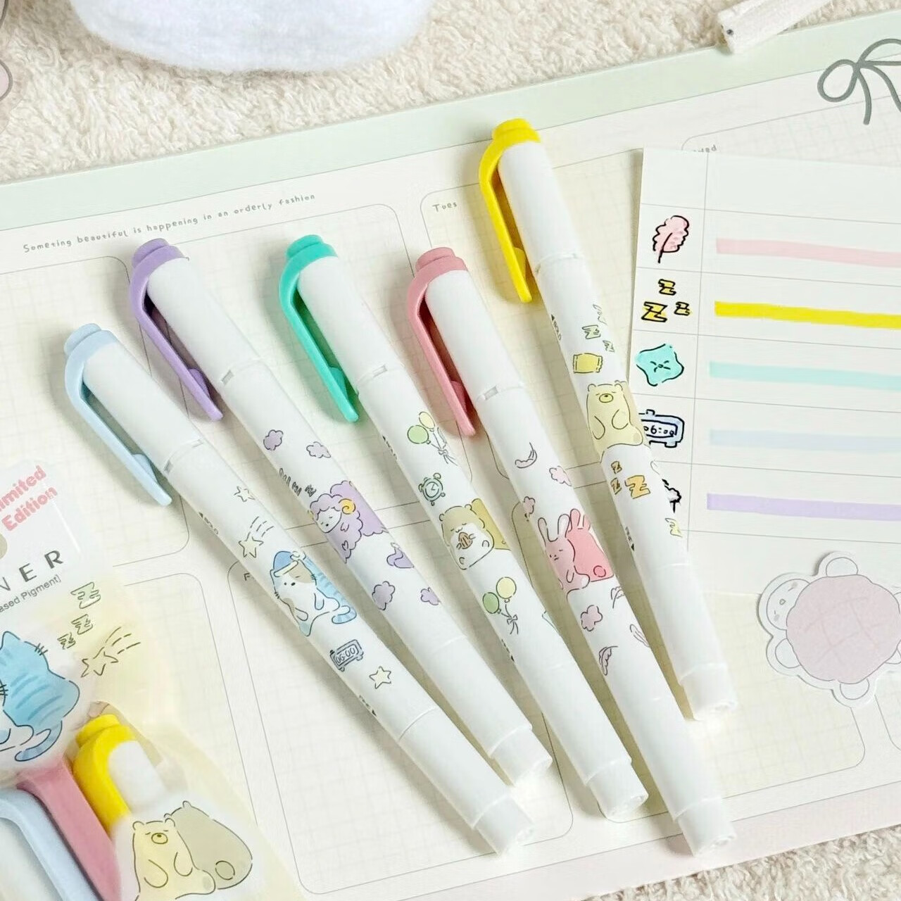 三年二班护眼荧光笔高颜值荧光标记笔学生用多色记号笔彩色划重点手帐手账笔做笔记本马卡龙淡色萤光笔银光笔