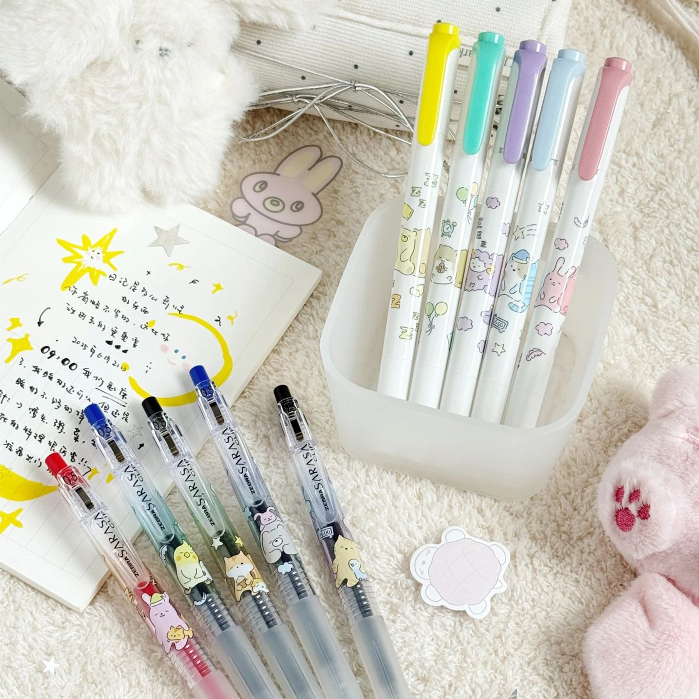 【现货组合】日本ZEBRA斑马官方旗舰店官网斑马荧光色笔WKT7学生用划重点MILDLINER手帐新彩色双头标记号套装